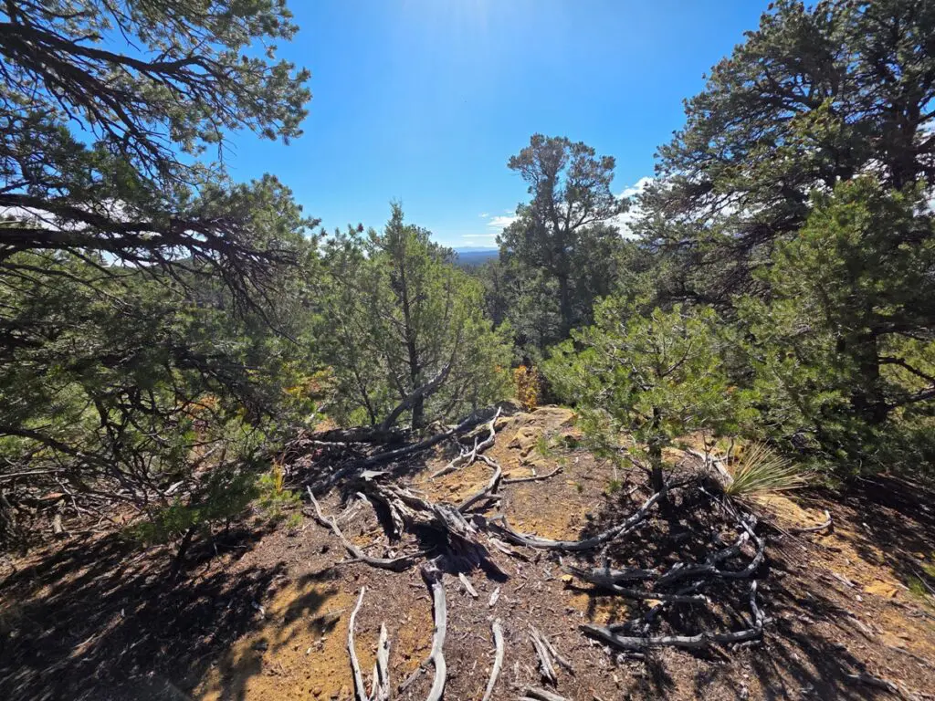 Driveway access off private ranch dead-end spur road takes you onto the top of the tree-covered parcel with great potential areas to use for future building/camping sites.